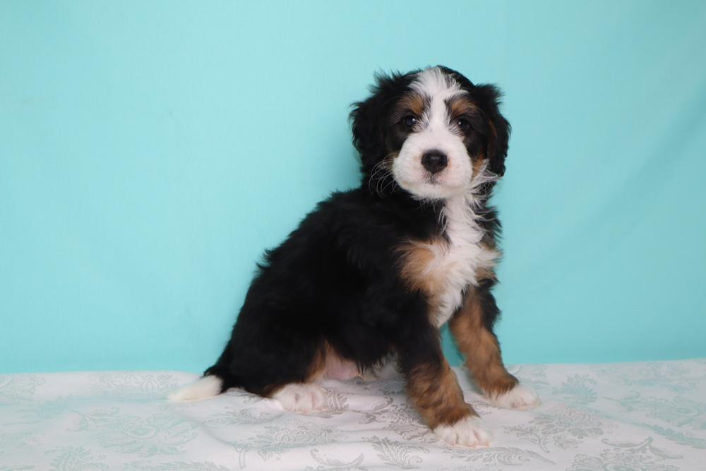 Everest is the perfect blend between quizzical tactics and affectionate friendliness! You can find this boy laying cross legged with a ‘matter of fact’ type of confidence where he leads the pack as being more of an anchor of safety just as much as he is a relaxed, roly-poly love bug! He has a very slight need for competition, but will override his own desires in an effort for communal play, and camaraderie! Expect Everest to be intuitive, kind, and a bit more mellow than his fellow littermates! If you are looking for a man’s man type of vibe who will have a stubborn streak hidden under all of that friendly confidence – Everest is ready to make his social circle wider and community stronger!