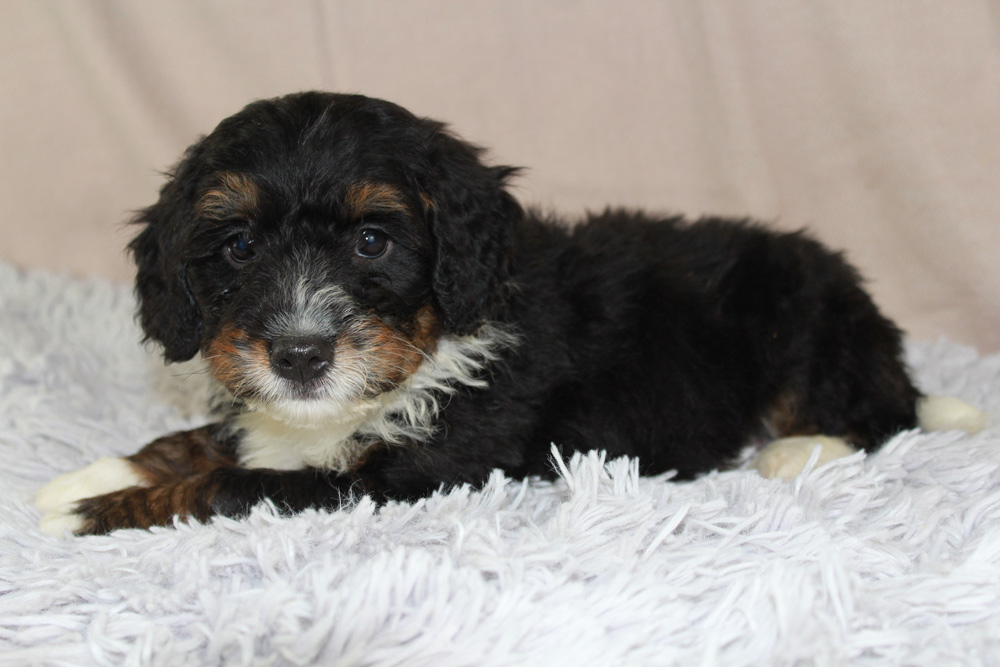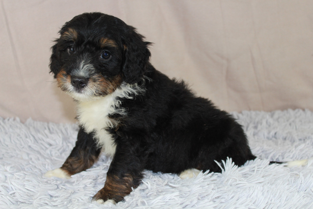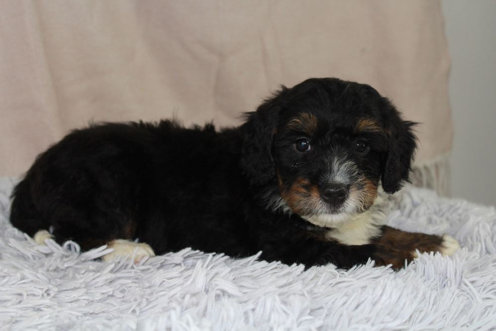 Franklin is a loving guy. He has a cuddly personality! Franklin is a sweet pup who loves to play with his siblings and his humans. He has a unique wavy tri-colored hair coat and doesn’t have a white stripe on his nose. (Just a little smudge on his muzzle) 🙂 Contact us today to make him your own!!!!