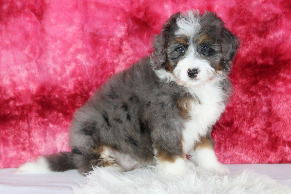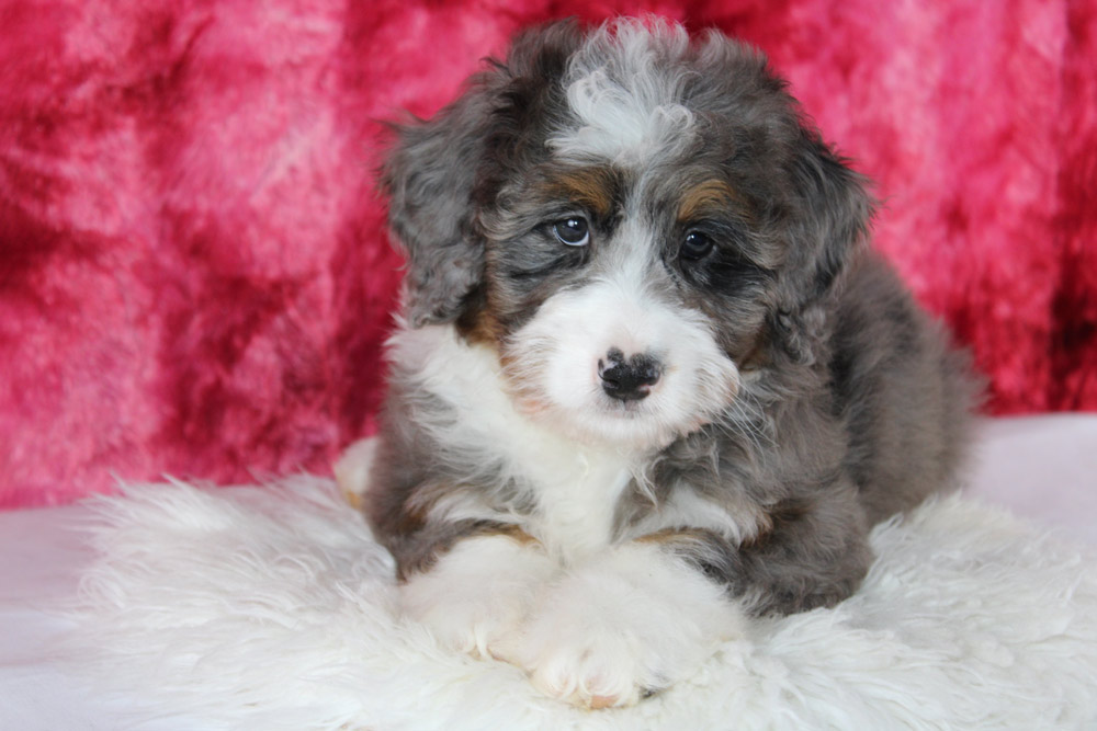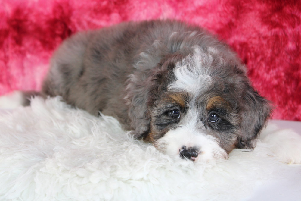 Living as the ‘puppy pirate’ pal to her sister Jazzie- Gracey has learned a thing or two from the master of adventure and confidence! One thing we love about Gracey is her lack of worry when it comes to diving into the thick if the action to be the playmate everyone needs in their life- happy, fun-focused, and imaginative! Our girl has a knack for hoarding toys in a secret stash under furniture between distracting zoomies to ensure her siblings don’t discover her ‘burried treasure’ but is never aggressive if they decide to plunder! Gracey is vivacious, affectionate, and loves connection despite having a penchant for hidden agendas! If you are looking for a playmate for your kids or want to have a furry friend to discover your social life in a new way- Gracey is the one for you! Gracey did show a tiny umbilical hernia on the vet exam that will look like an outy belly button and is purely cosmetic. Surgery Not Medically Necessary and has not affected your puppy’s health in any way.
