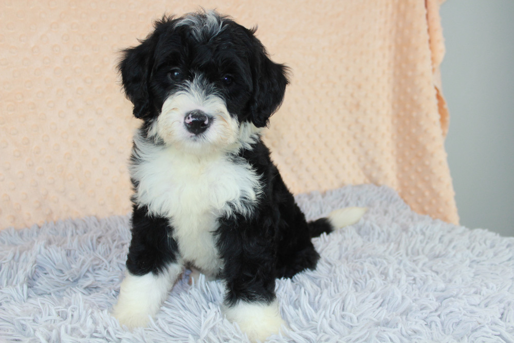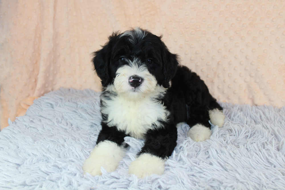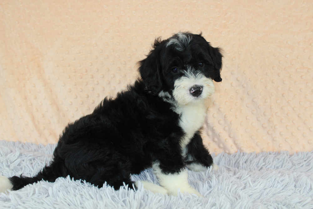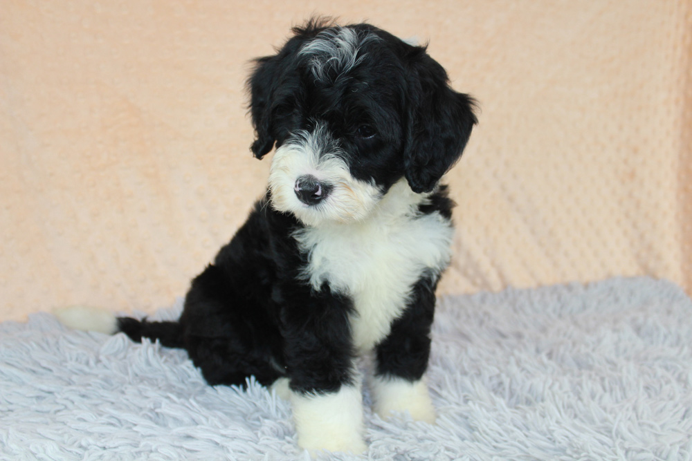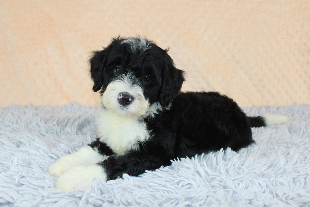 Harmony has a beautiful black/white coat! She has that lovely and caring disposition. She tends also passes on some of the Hypo-Allergenic and non-shedding qualities as well as moderate size that we all love so much about our Mini Poodles!