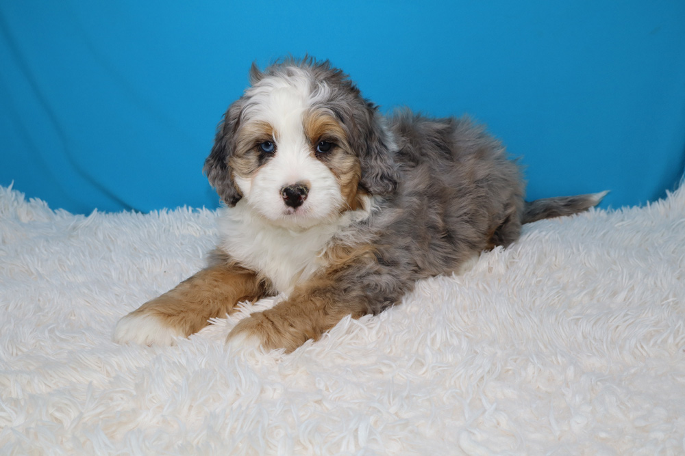Aptly named for her sweet demeanor and slower approach to life- Honey is the most Bernese leaning temperament out of her entire litter! We think this girl could be the girlfriend to Sherlock Holmes as her genuine and inquisitive curiosity is her number one form of entertainment! Honey prefers to be in the background – never wanting to draw too much attention to herself, but has the mindset of being fully delighted in all the little details! We admire her gentle spirit, her affectionate nature and her ability to dish out a little sparkle and spunk from time to time! If you are looking for a calming warm energy to be at your new best friend- Honey is the one for you!