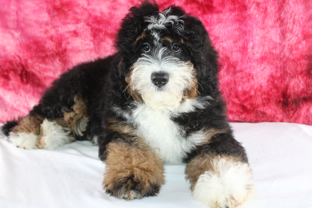 After years of breeding bernese, we are convinced that they must be related to bears and Jose definitely gives off those king of the forest vibes he inherited from his mom’s side of the family! This boy is an oafy hunter who is independent, analytical, and who wants what he wants! Our boy is only willing to exert little output and slow motion energy to casually hunt for the next best thing! If he doesn’t find it- Jose is easily disenchanted and will plop down dramatically disappointed that his efforts did not yield him anything truly exciting- so expect him to be mellow with boredom if he’s got nothing new to learn! This puppy would be perfect for retirees who are looking for a calm companion to take to the cabin or would be perfectly content meandering around the garden! If you have a low key life but love the great outdoors- Jose is the one for you!