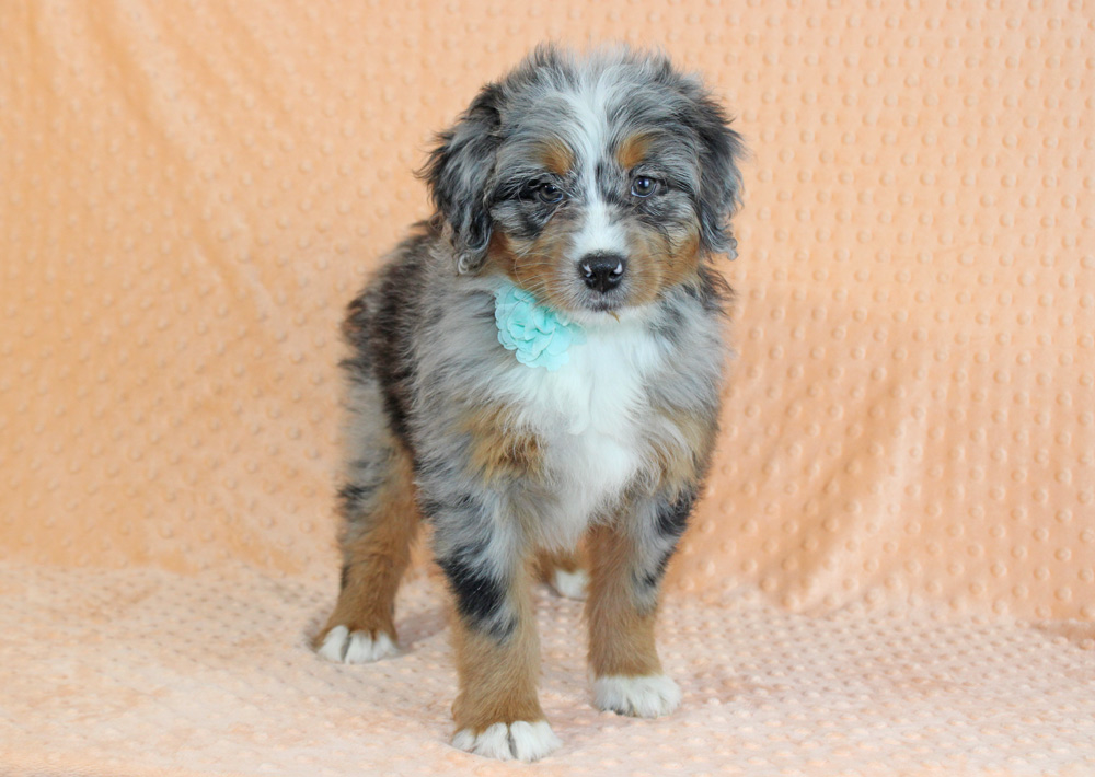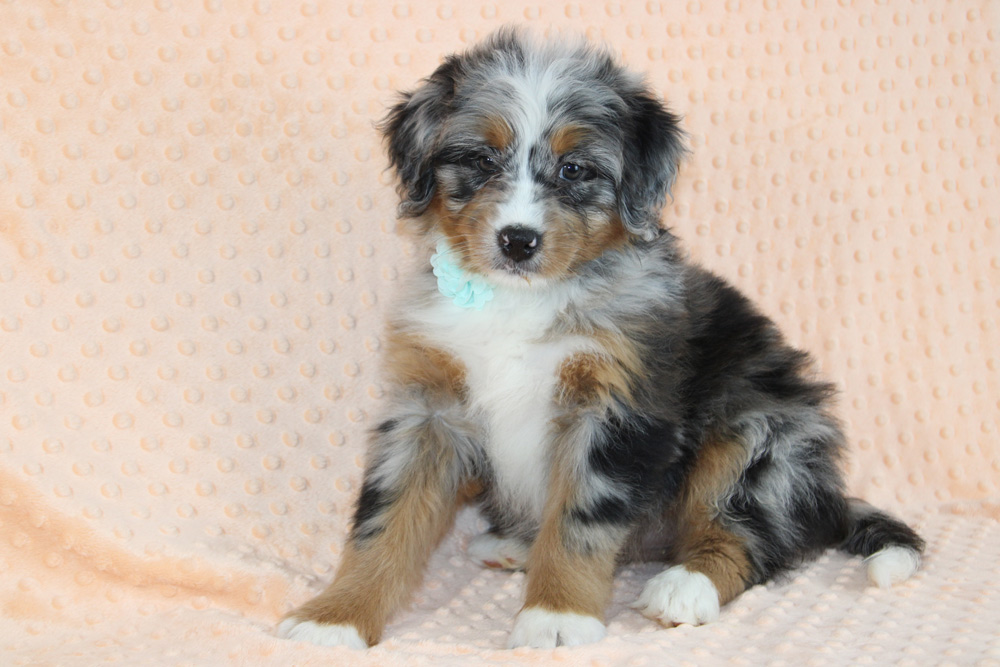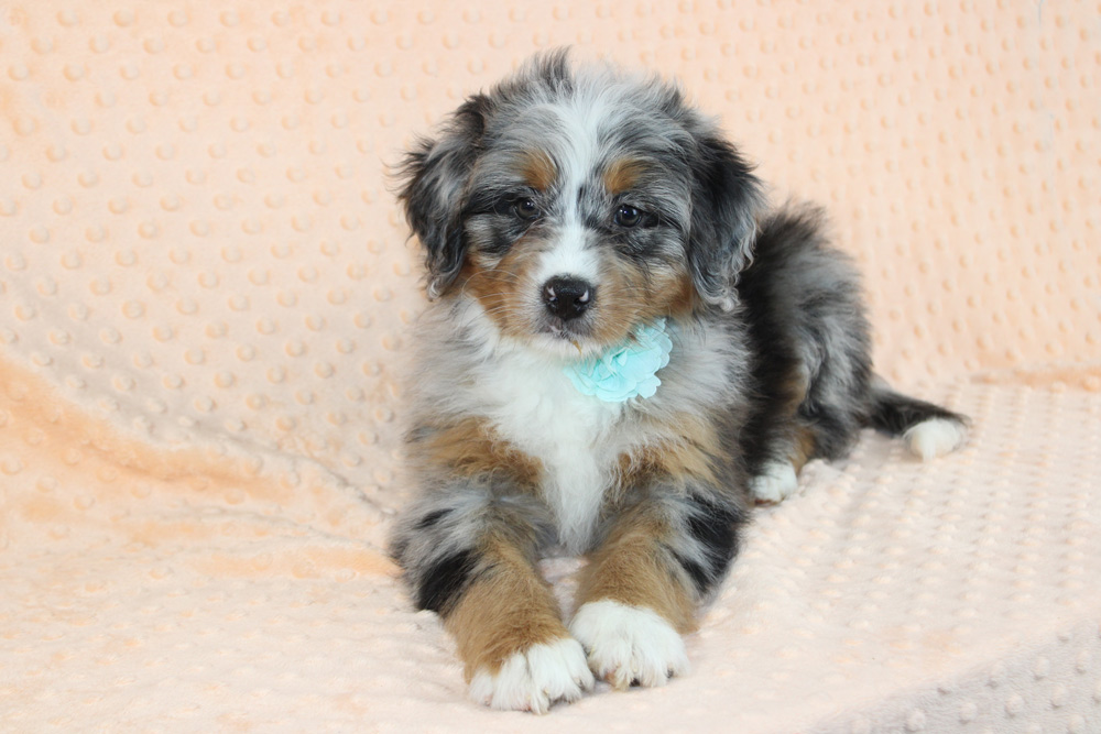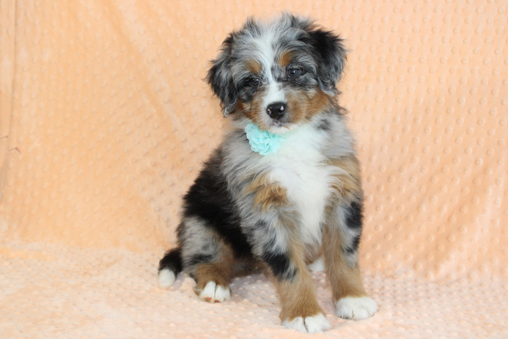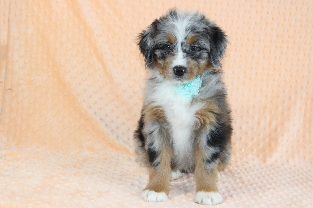 Strong willed and dramatic- it’s as if Leila was born to take the leading role in not only her life but everyone else’s life too! She is the demanding sister who has a fear of missing out and gets jealous for attention- making sure she is always in the know while constantly stealing the show! Needless to say Leila is confident, imaginative, determined and definitely has a few ornery streaks to keep life exciting! Plotting, playing, and being a sweet-hearted little rascal is what sets Leila sport from her siblings! If you’re an experienced dog owner who adores a larger than life personality- Leila is the one for you! Leila did show a pinpoint hernia on her Vet exam but our vet says that this is nothing to worry about, does not affect her in any way, will very likely close on it’s own and will look like an outy belly button.