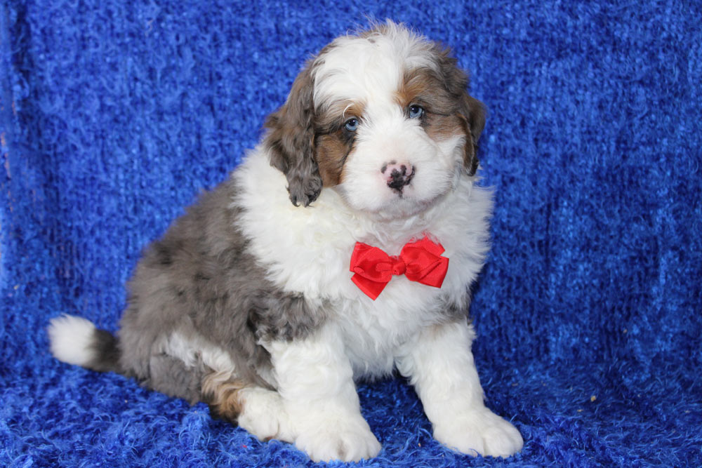 A huge favorite among his littermates, Mario is the designated snuggle buddy of all he meets! This boy is a lover, not a fighter and enjoys laying around taking in the sights while allowing his big fluffy body to be a place of comfort and refuge for all! We like to think of Mario as the puppy version of a grandpa or a Mr. Rogers type who just gives off vibes of genuine love and safety without having to do anything but just lay stoically in the room with you. Mario would be an excellent match for literally any family lifestyle or dynamic- this dude thrives on being calm and versatile no matter where he’s at or what others are doing!