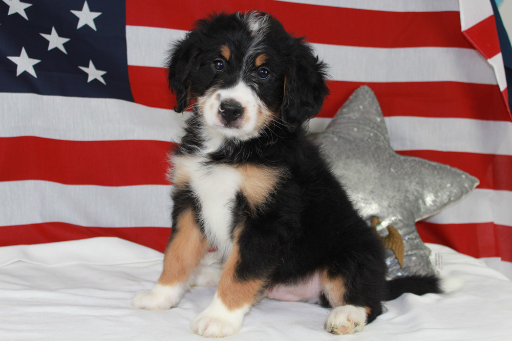 Mischievous and playful little Murray is in search for his fur-ever home! He is an adventurous little boy who loves to play with his humans! If you are looking for a puppy that has more of the Bernese features but has less shedding than a Purebred Bernese then look no further! Murray may just be exactly what your looking for!