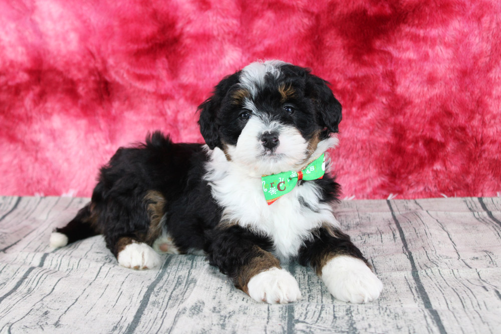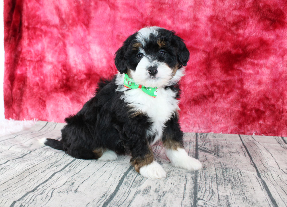 It’s easy for Sitka to find an energy who is as welcoming as a patient mentor! This girl longs to learn and build her confidence up under the tutelage of a more bold brother or a socially experienced sister! She is simple, casual, but can have little emo moments where her heart gets so disappointed that she has been excluded from pack play! Sitka can be best described as a nerd who is focused on learning, but is still navigating blending in and adapting to the social structures with her siblings! She is so loyal, so affectionate, and never wants to start any type of drama with her litter! You are looking for a go with the flow, easy-going, Bernese leaning puppy- Sitka is ready to make your heart sing!