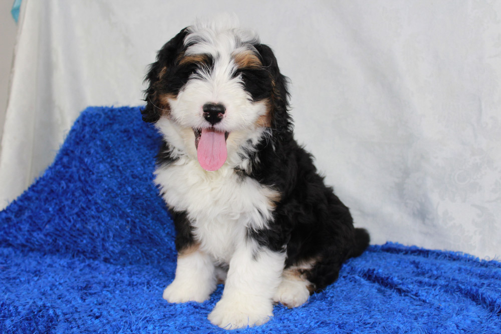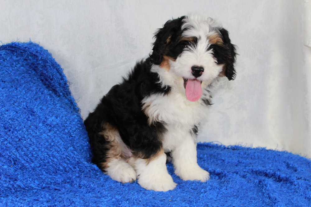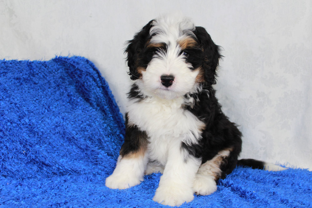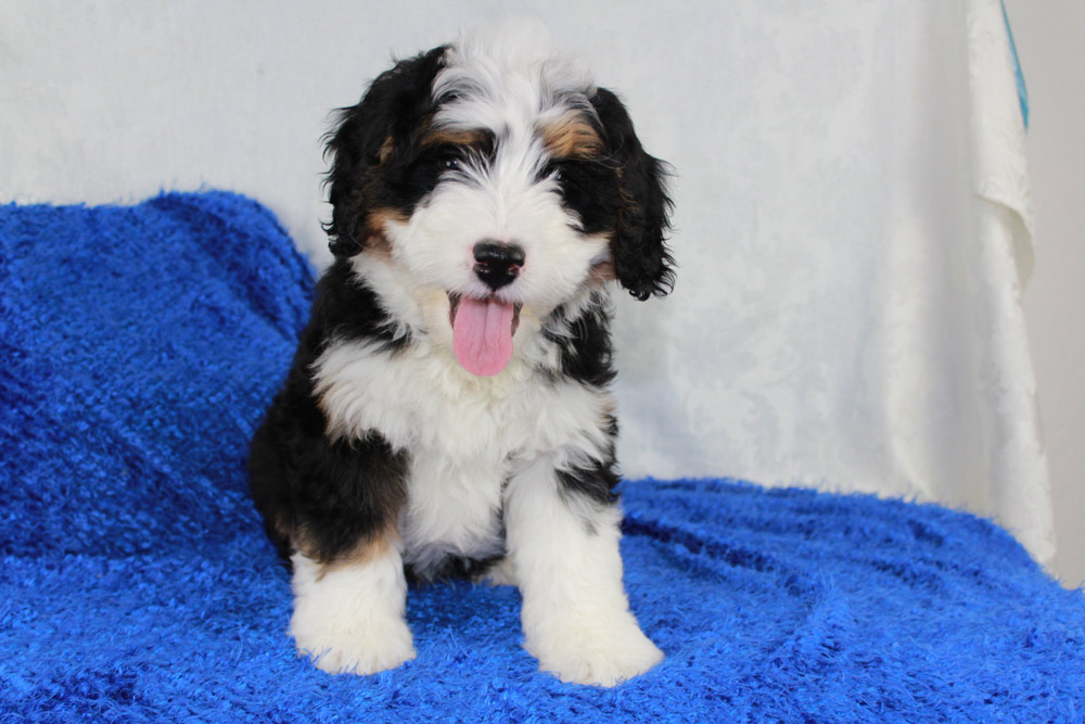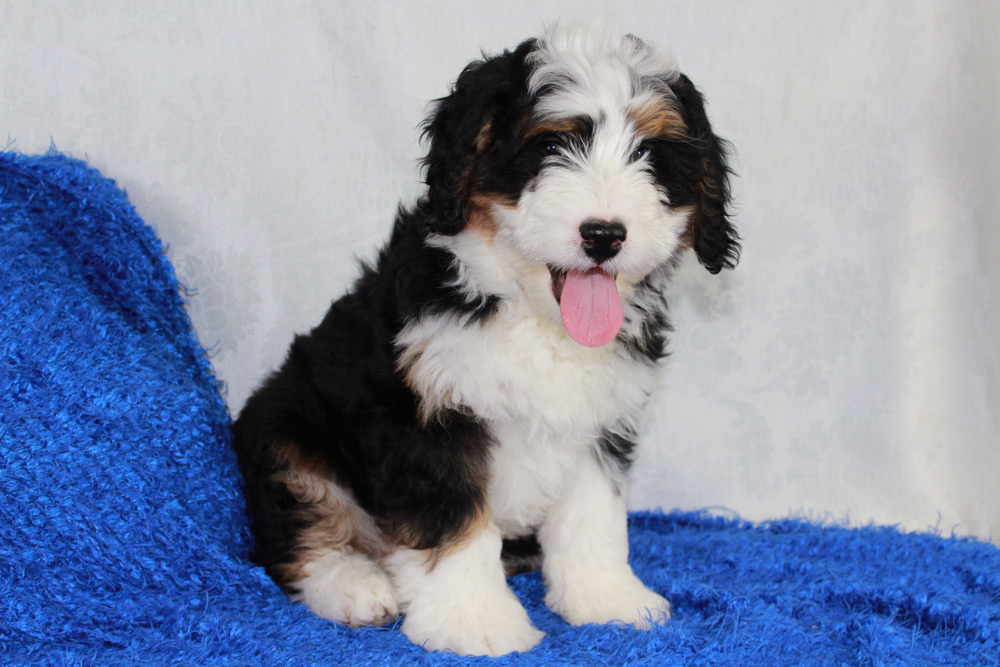 Sully is another one of our larger Mini Bernedoodle puppy’s. He has the calm sweet natured personality of a Bernese Mountain Dog as well as the intelligence of a Poodle. Sully likes nothing better than having his humans scratch his ears!