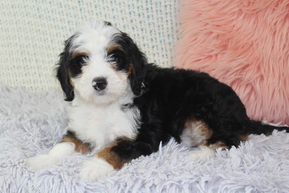 If we could translate Tori’s personality into something sweet- we would say this girl is like cotton candy. She’s fluffy, sweet, delicate, and her world revolves around the connection she makes with others. This puppy is perfectly pack-centric and oftentimes needs to be in the thick of her siblings before she can truly show her confidence. Quietly investigative and dainty in her approach, you can expect Tori’s presence to melt your heart as quickly as cotton candy melts in your mouth! We believe this beta girl would make an excellent companion for younger children or an older couple who want a dog to sweeten up their lives in a low-key way.
