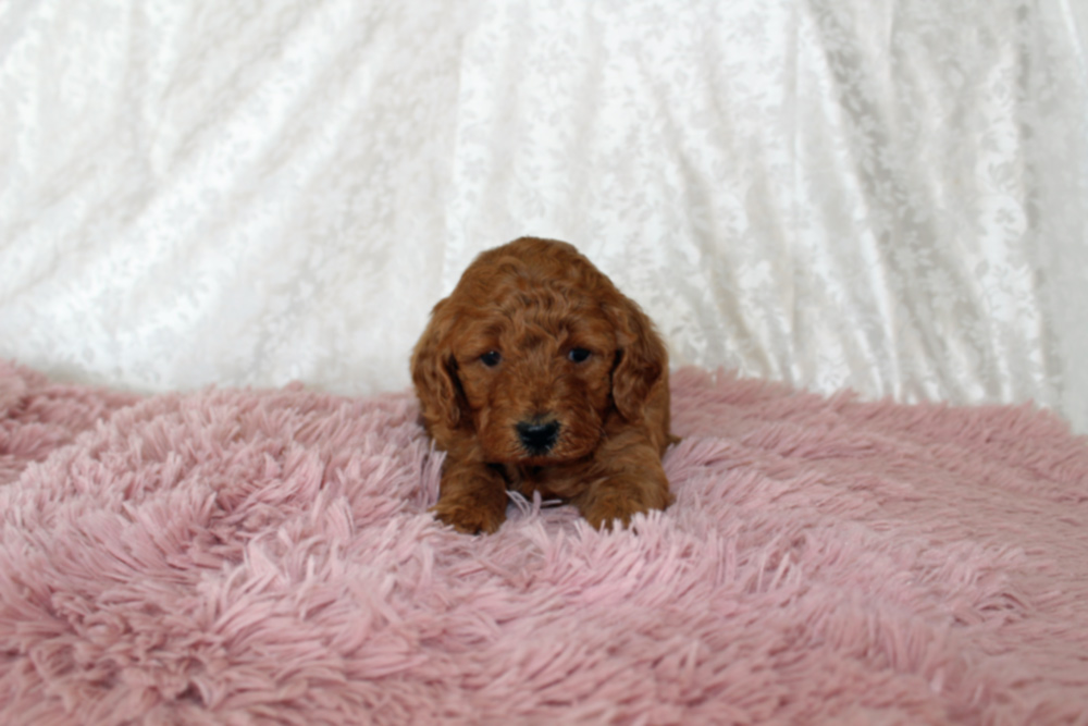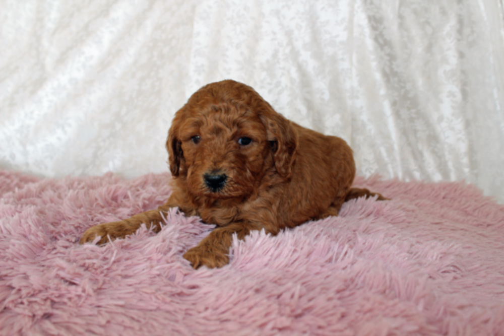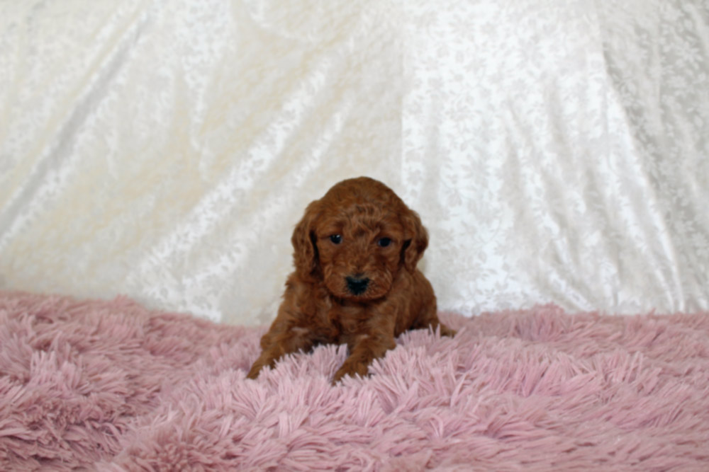 Ava is a cute little puppy in search of a forever home! Ava sports a nice red colored hair coat to go along with her easy going temperament. She would make a wonderful cuddly companion. Her parents are both Genetically health tested .