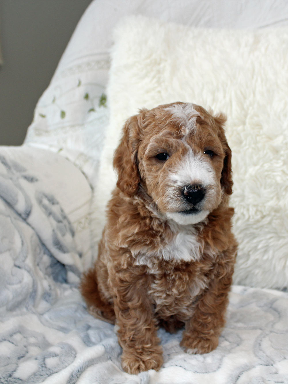 Destiny is a sweet little puppy in search of a forever home. Although she is the largest in the litter , she has a somewhat reserved nature. She needs a little time to adapt to her new surroundings but once acclimated she will be your furever friend!