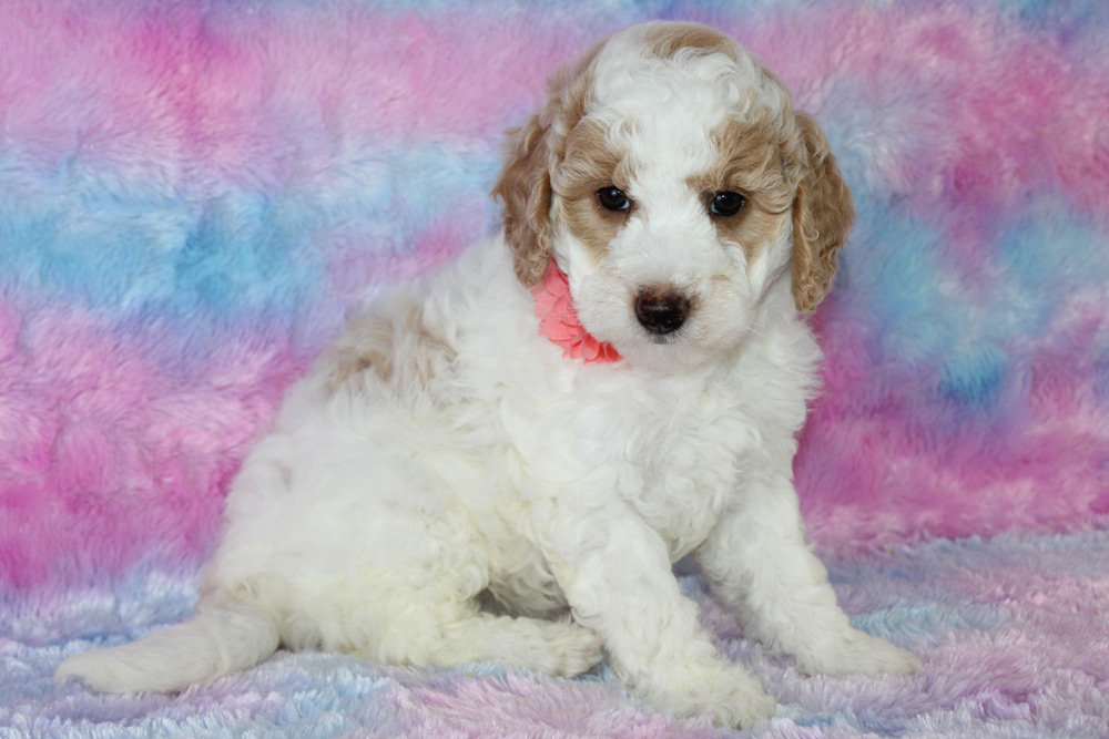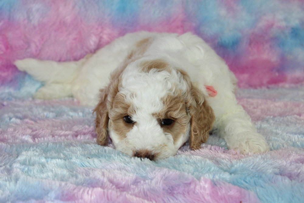 Upon first meeting Jana you may notice her matter-of-fact confidence almost as if she’s the Royal subject of for her littermates- think Princess Diana vibes. She has a stoic confidence that keeps humble and almost human like with her mannerisms as she seems to casually cross her legs when more focused on something intriguing and relaxing! We love the inner diva that you may not notice right away because of how sly our girl is-but you will quickly notice that as she’s playing and carrying on- Jana will look back to make sure you’re watching and adjust her actions accordingly- oftentimes with a bit more flair if she knows she has an audience! Jana is intuitive, smart, and has an undercover boss side that keeps on the down low while her genuine happiness is constantly stealing the show! If you love a puppy to be part princess and part playmate- Jana is looking for the family that can make her feel like she’s the queen of hearts!