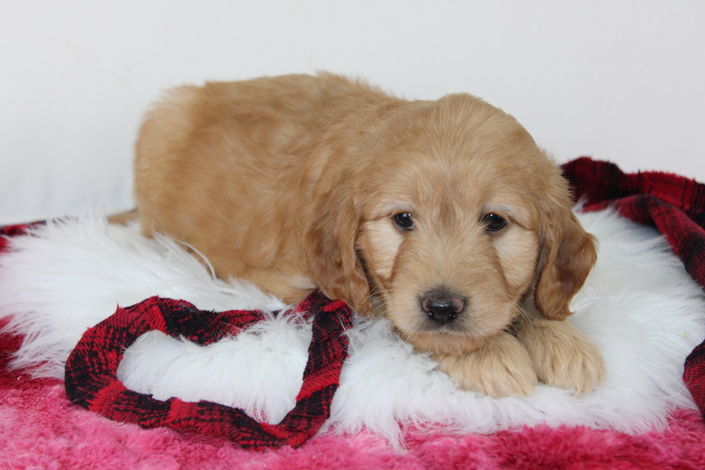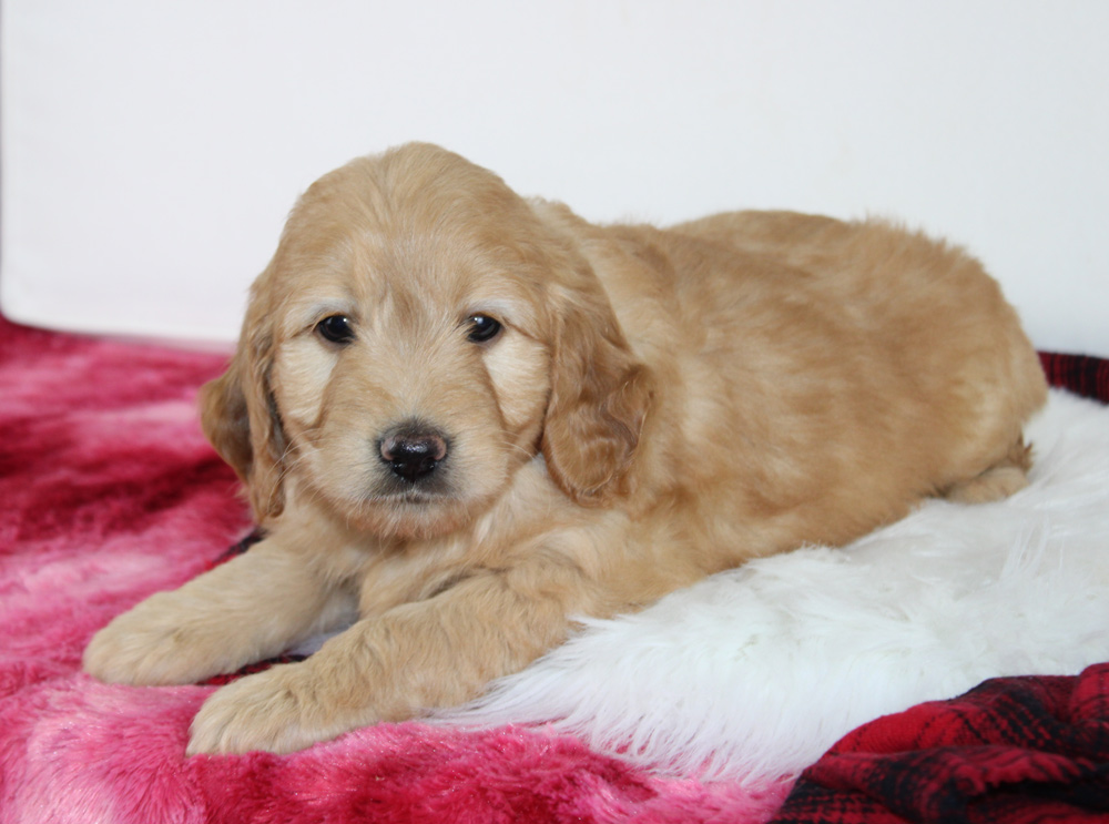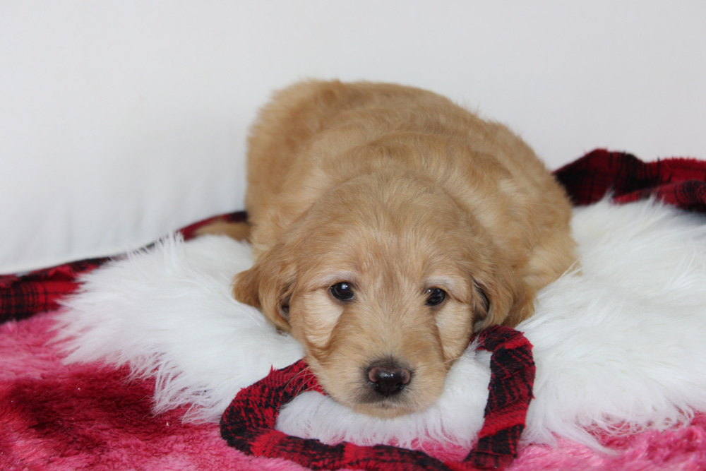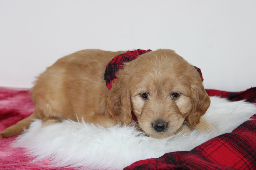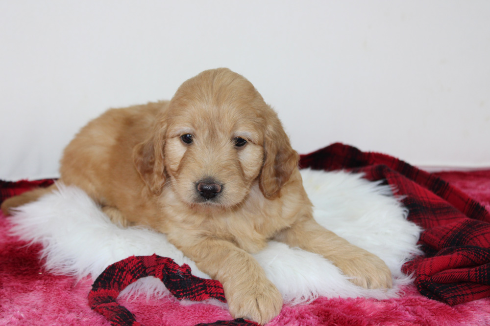 Kippa is puppy who has an independent spirit yet gentle and endearing! You kind find this girl quietly navigating her way over, under, and around anything and everything in the room like she’s on the hunt for the perfect hideout! When she’s not focused on her intellectual tasks, you can find Kippa wagging her tail perfectly content just taking in all of the non-stop cheap entertainment her siblings provide! Despite being perfectly satisfied flying solo- Kippa has a huge heart for snuggling and showing affection to humans she feels safe and connected to! If you are looking for a mild-tempered dog to give you that quintessential golden retriever family experience, look no further than Kippa!