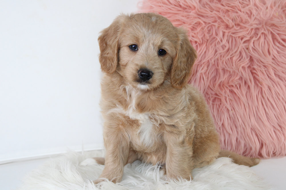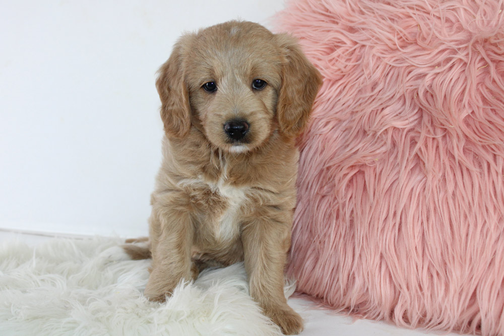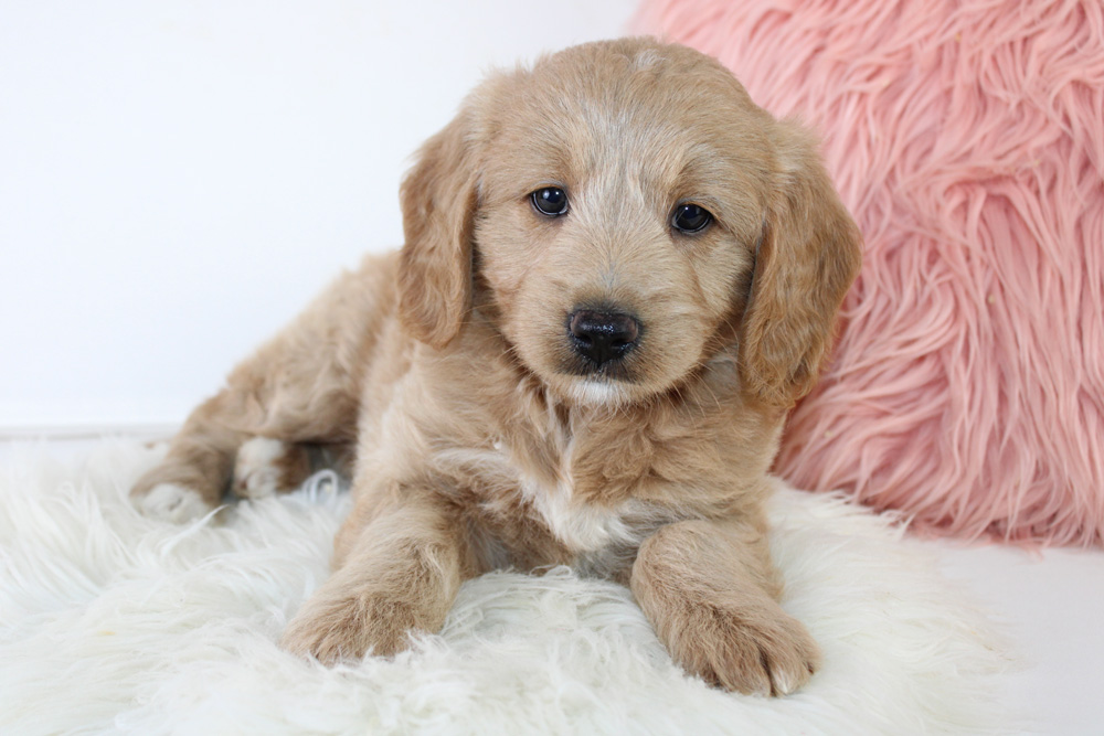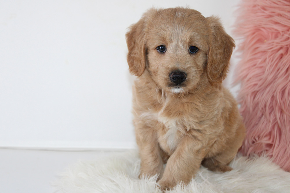 If you are a huge fan of Golden talent and temperaments but need a low shedding dog- Kit wins the trophy for being most retriever-like! This girl’s primary sense for learning is using her nose to process every scent around the play room and kennel! We adore Kit’s intuition and intelligence that she happily shares with beloved humans who need her by their side! Our puppy’s heart grows each time she’s called over, giving paw as if to say ‘I’m at your service’ and does so with an eager heart to learn! Although we see a bit of a secret stubborn streak in this one- we believe it stems from not 100% comprehending the complex world around her rather than a downright rebellion! If your house is divided between hunting dog and dear friend who will take a load off the weight of constant housekeeping- Kit is the one for you!