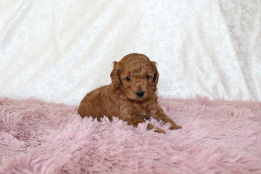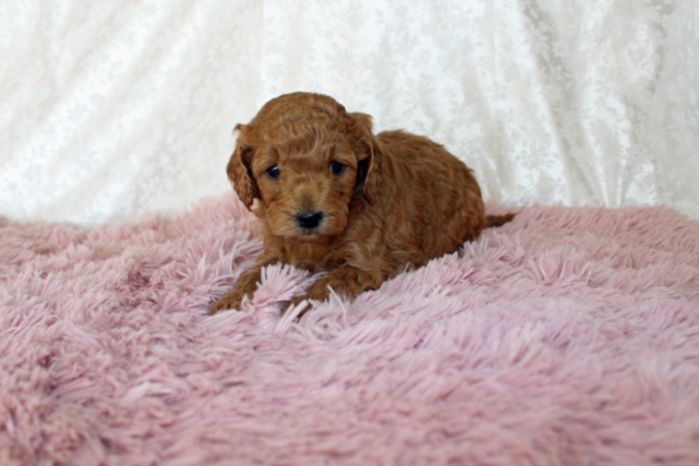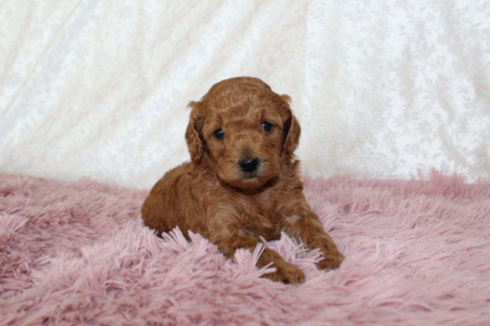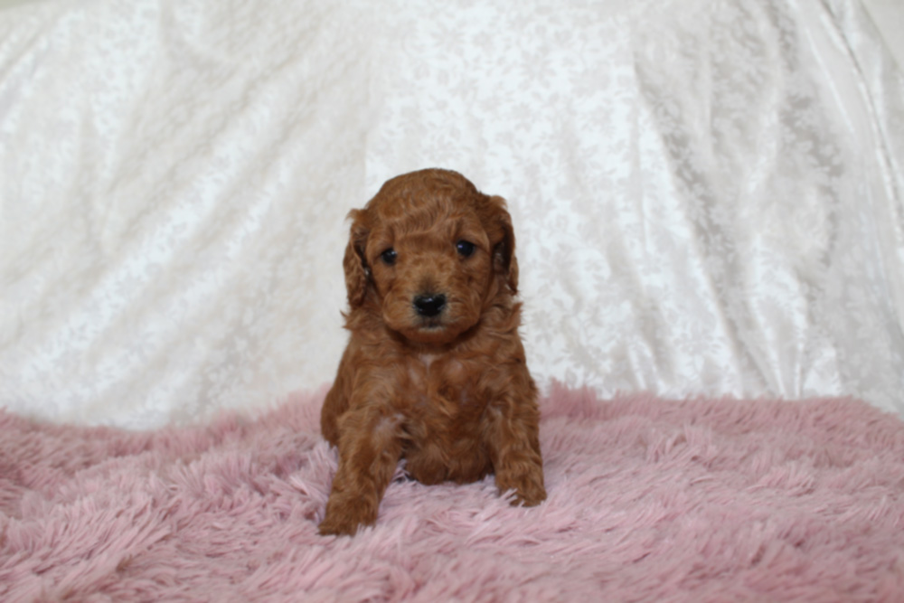 Maddy is a cute little puppy in search of a forever home! Maddy sports a nice red colored hair coat to go along with her easy going temperament. She would make a wonderful cuddly companion. Her parents are both Genetically health tested .