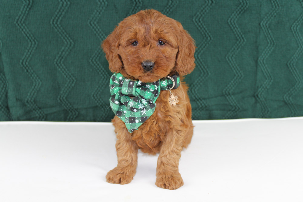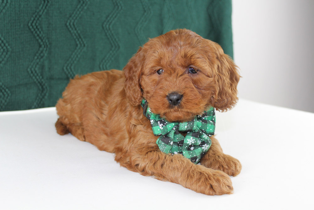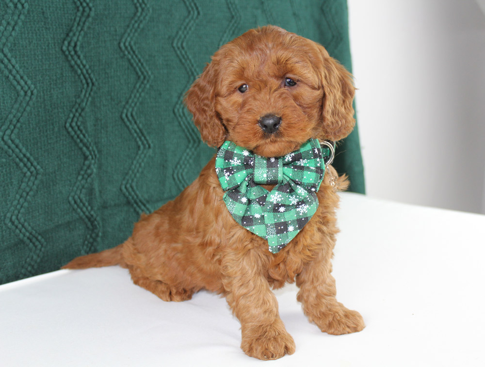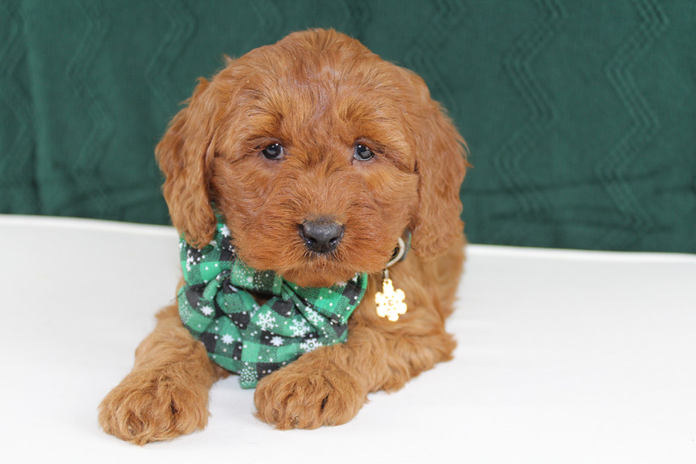 When you think of your typical labradoodle- Ciella is it! She has the most sustained playful energy out of her littermates, loves to explore, and is happy to play with others or romp around on her own. She is all happy tail wags, joyous about life, but also appreciates relaxing with her back legs straight out while she watches over her siblings play. A natural born leader, she is the perfect splice of being a bold big sister and a motherly influence on her littermates. Because Ciella is the female alpha, she would be best matched with a family who has experience with properly managing the dynamics of creating a solid pack pecking order.