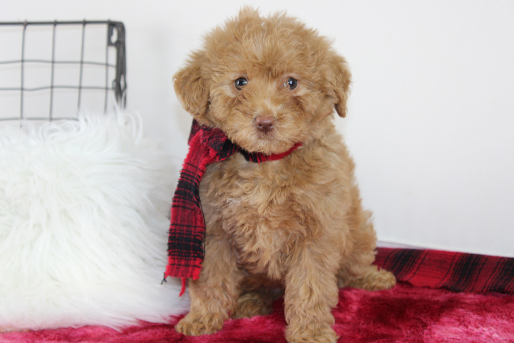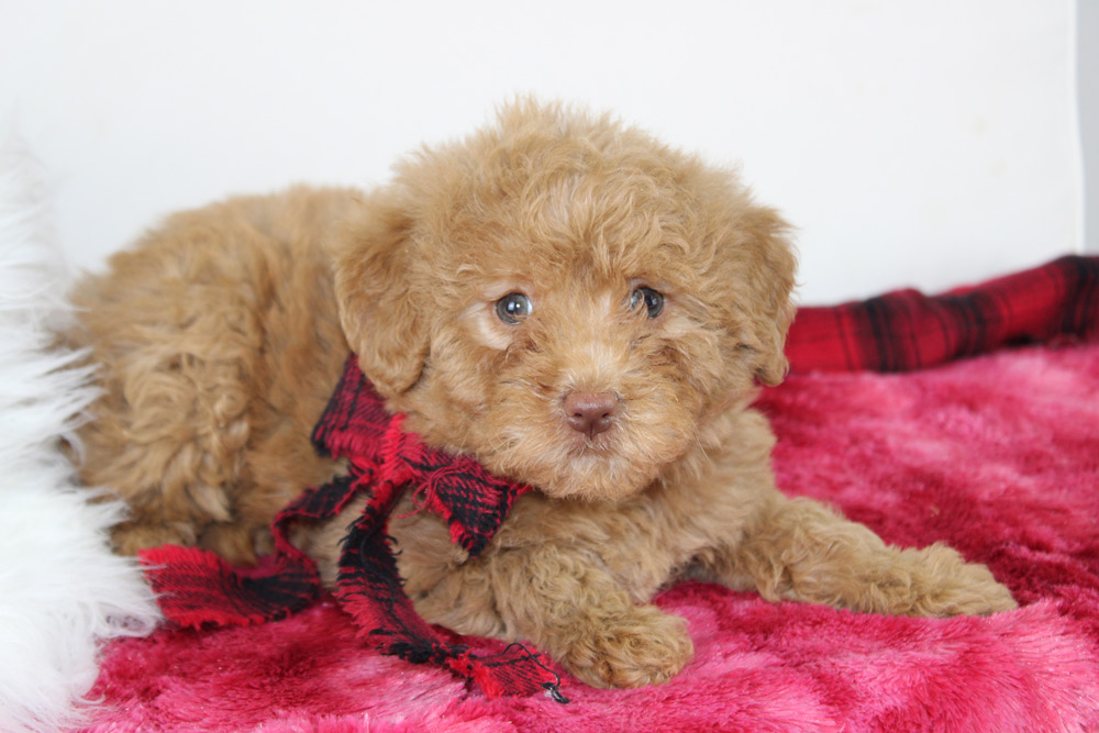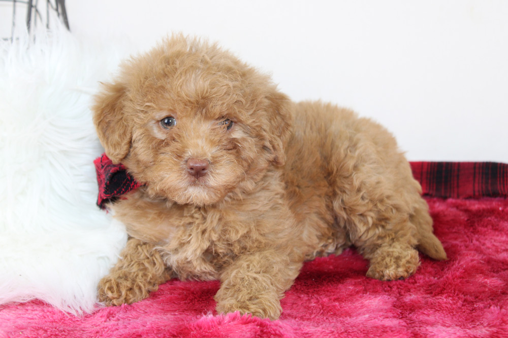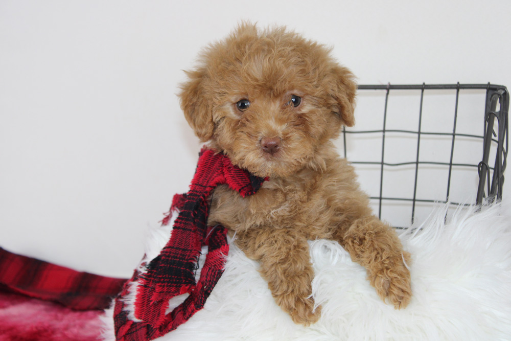 Upon first meeting Lillian comes off quite dainty, quiet and a bit shy, however that is just a facade for the bold personality that thrives just below the surface! It’s as if she knows how to impress you with just enough proper sweetness of a 1950’s housewife when there is a 1960’s hippie within! This girl has the confidence to be the first to say hi to new strangers and will quickly make friends by sitting at their feet or offering them gentle kisses. Once the initial acquaintances have been made- Lillian’s sassy side comes out to play! She has been known to purposely run and slide across the floor to intercept a toy or fearlessly explore on her own as well. If you love small dogs who are big on sweet with a little kick of spice- Lillian is the puppy for you!