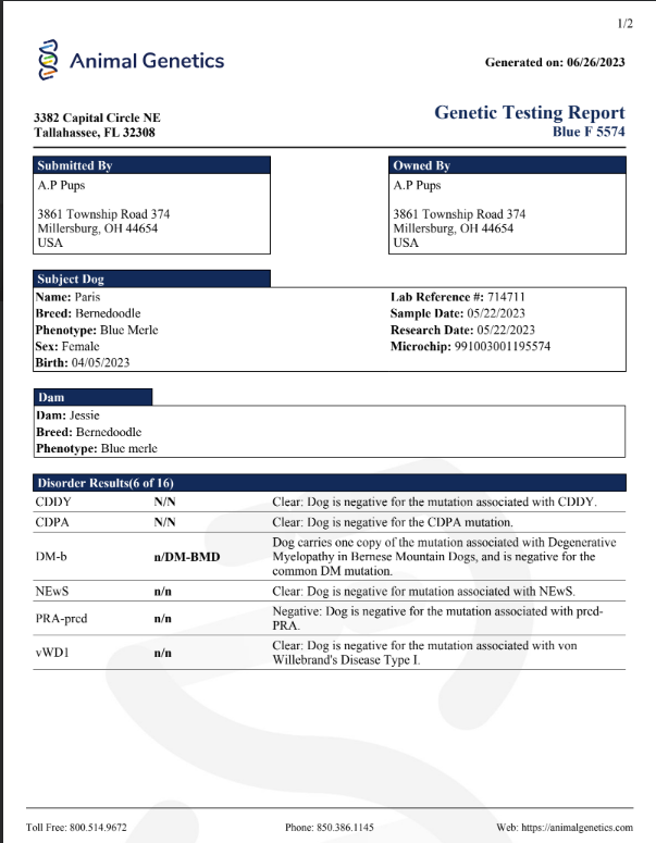 Paris is a super sweet and loving Mini Bernedoodle. She has a very gentle and easy going temperament.