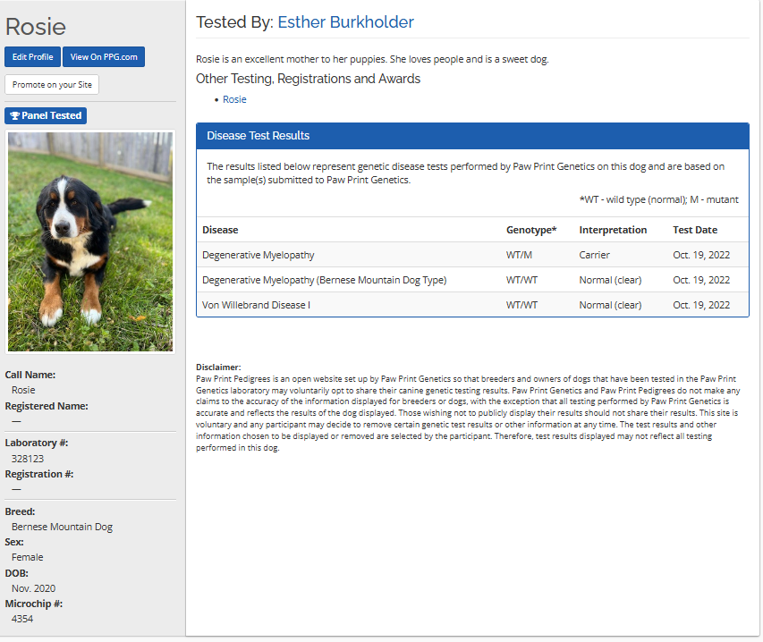 Rosie is an excellent mother to her puppies. She loves people and is a sweet dog.
