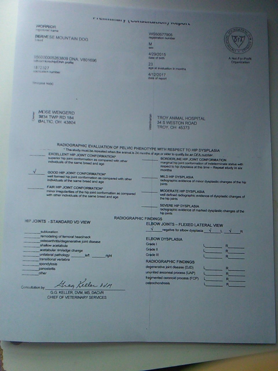 Worrior is large for a Bernese Mountain Dog. He is OFA Hip Certified and Genetic Tested(clear).
