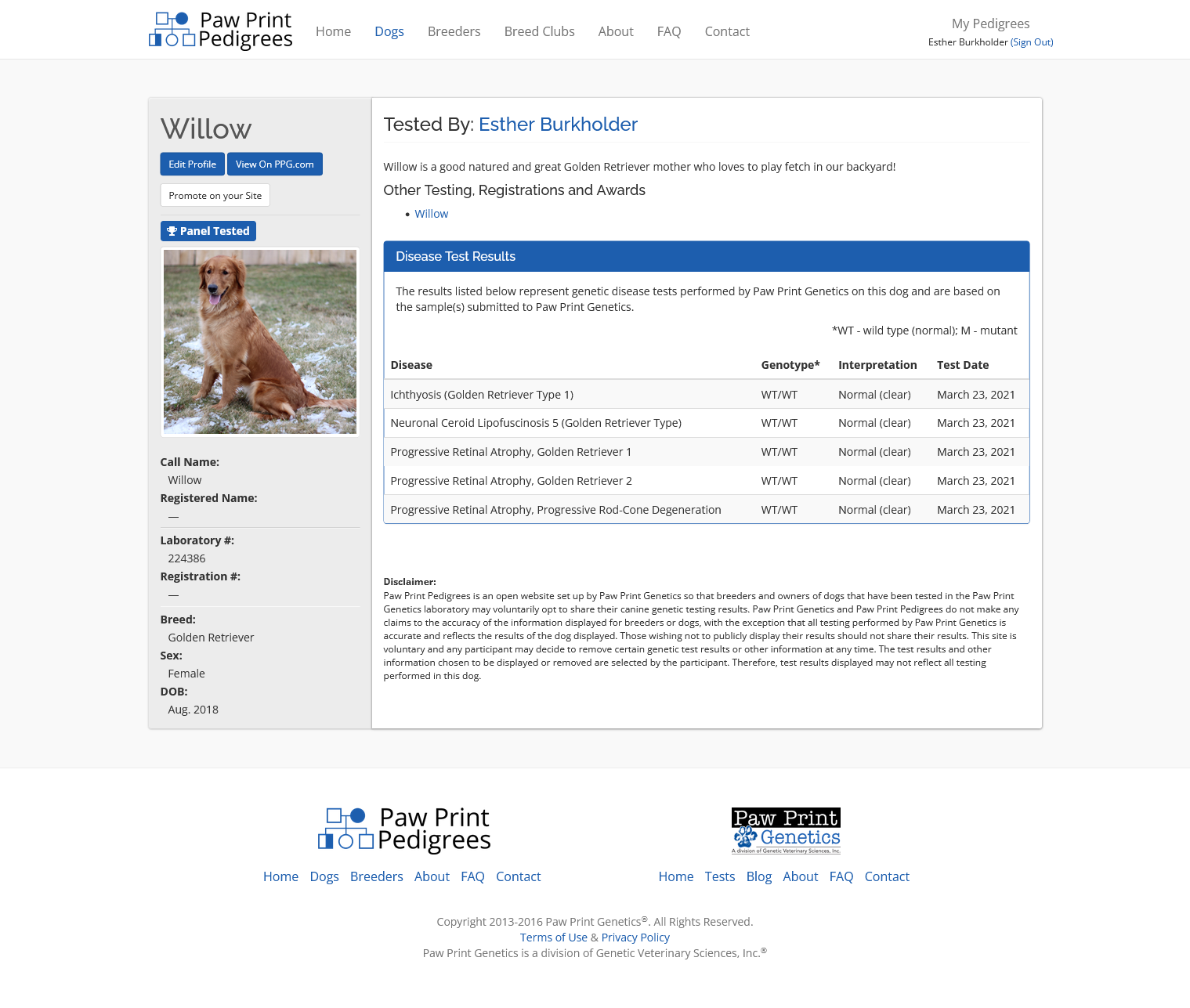 Willow is a very calm and gentle Golden Retriever. She is a super mom to all her puppies!