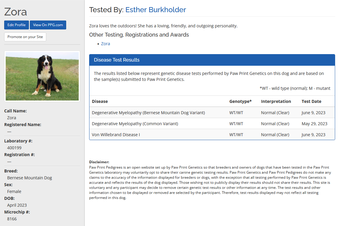 Zora is a super loving, friendly, and adventurous girl! She loves the outdoors, Zora is an excellent mother to her babies.
